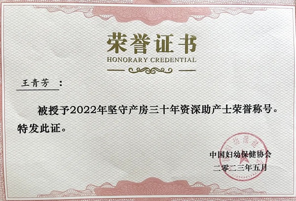 【全国文明单位创建|喜讯】我院产科王青芳主管护师荣获“坚守产房三十年资深助产士”荣誉称号