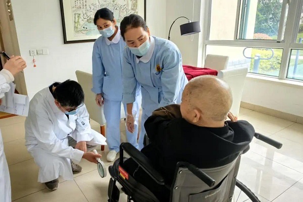 党课结束后,中山医院青浦分院第十六党支部组织党员专家“送医上门”。皮肤科副主任医师钟文俊走进老人房间,为近10名行动不便的老人提供一对一皮肤病咨询服务,耐心讲解日常护理要点。老人们纷纷表示:“在家就能享受三级医院专家服务,既贴心又方便!”医务党员们也表示:“我们将以此次活动为契机,建立‘党建+医养’长效机制,定期组织党员医护团队下沉养老机构,切实解决群众就医急难愁盼。”