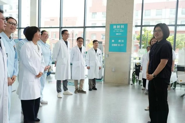7月15日,区委副书记刘琪一行来到中山医院青浦分院急诊部,看望慰问奋战在高温一线的干部职工,为他们送去清凉和关怀。在中山医院青浦分院急诊部,刘琪详细听取医院高温期间医疗应对举措及急诊科近期运行情况汇报。她充分肯定急诊团队作为“前沿阵地”守护者,全力护佑百姓健康的奉献精神,同时嘱咐大家要科学防暑、劳逸结合。