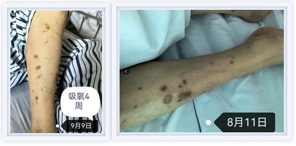 下面是一位糖尿病足患者经高压氧治疗4周的效果: