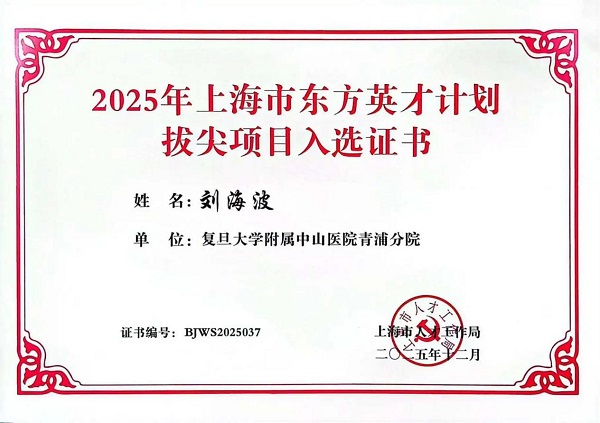 喜报!刘海波主任医师入选2025年上海市东方英才计划拔尖项目